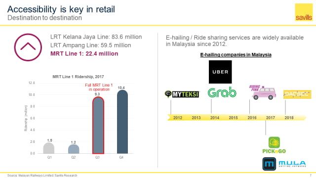 To him, “Accessibility is key in retail,” pointing out that enjoying destination-to-destination conveniences through the light rail transit (LRT) and mass rapid transit (MRT) lines and e-hailing or ride-sharing services have been widely made available in Malaysia since 2012.