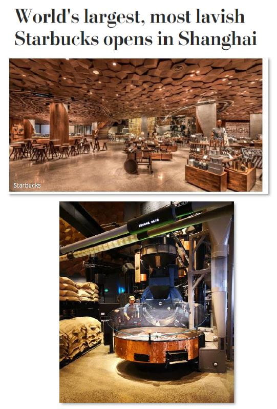 The focus is on specialisation, smaller format, and convenience. Yet conversely, in Shanghai, the world’s largest and most lavish Starbucks opened a 40,000 sq ft space on two floors with coffee roasted on its premises.